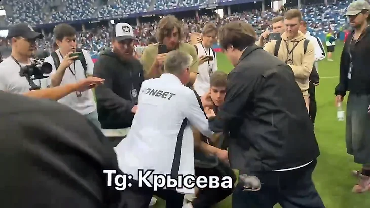 «Я считаю, что неправильно, когда идет нарушение, выбегать журналисту и лезть в кучу. Я ему сказал, потом пришлось рукоприкладство приложить. Я извиняюсь перед ним, но он себя повел неправильно. Они должны вот здесь стоять [показывает на бровку]. Им никто не разрешал выбегать».