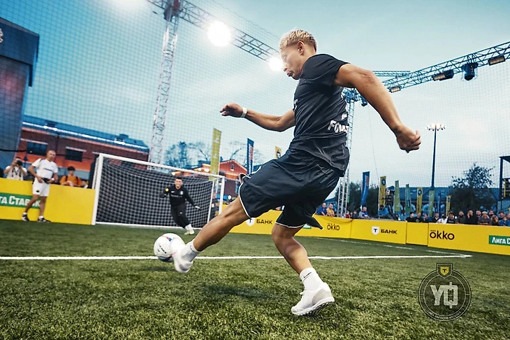 Помимо профессионалов в каждом матче играют звезды медиафутбола и ребята с драфта, но на площадке они все равны. Профессионалы раздают автографы, фоткаются с болельщиками и смеются одноклубниками (Дзюба уговорил пацанов из «Чертаново» сыграть очный матч «на жопу» – и с улыбкой пробивал мячом поле игры), медийные – кайфуют, танцуют и пытаются победить.