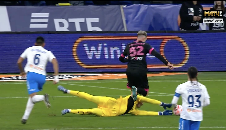 На 15-й минуте (к этому моменту «Динамо» вело 1:0) он получил пас из глубины поля, вышел один на один с вратарем «Динамо» Андреем Кудравцом. Вроде бы обычный эпизод.