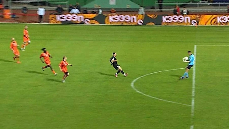 «СиндЕкат» не забил пенальти – хавбек Дмитрий Ефремов попал в штангу. Но на 22-й минуте екатеринбуржцы все же сравняли – Герасимов замкнул головой подачу после «аута Азамата». «Броуки» увидели, что перед аутом мяч попал в руку игроку «СиндЕката». Но Бердников не пошел к монитору – объяснил игрокам, что мяч попал в руку задолго до гола («другая фаза атаки»).