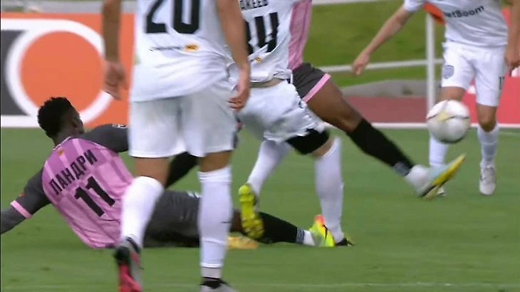 ● Требовал красную игроку «СиндЕката» Нзимену Ландри – за подкат сзади: «Железная красная карточка! Подкат сзади прямо в ахилл. Но для слепого судьи уровня КФК это область пятки».