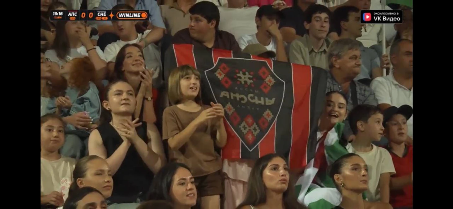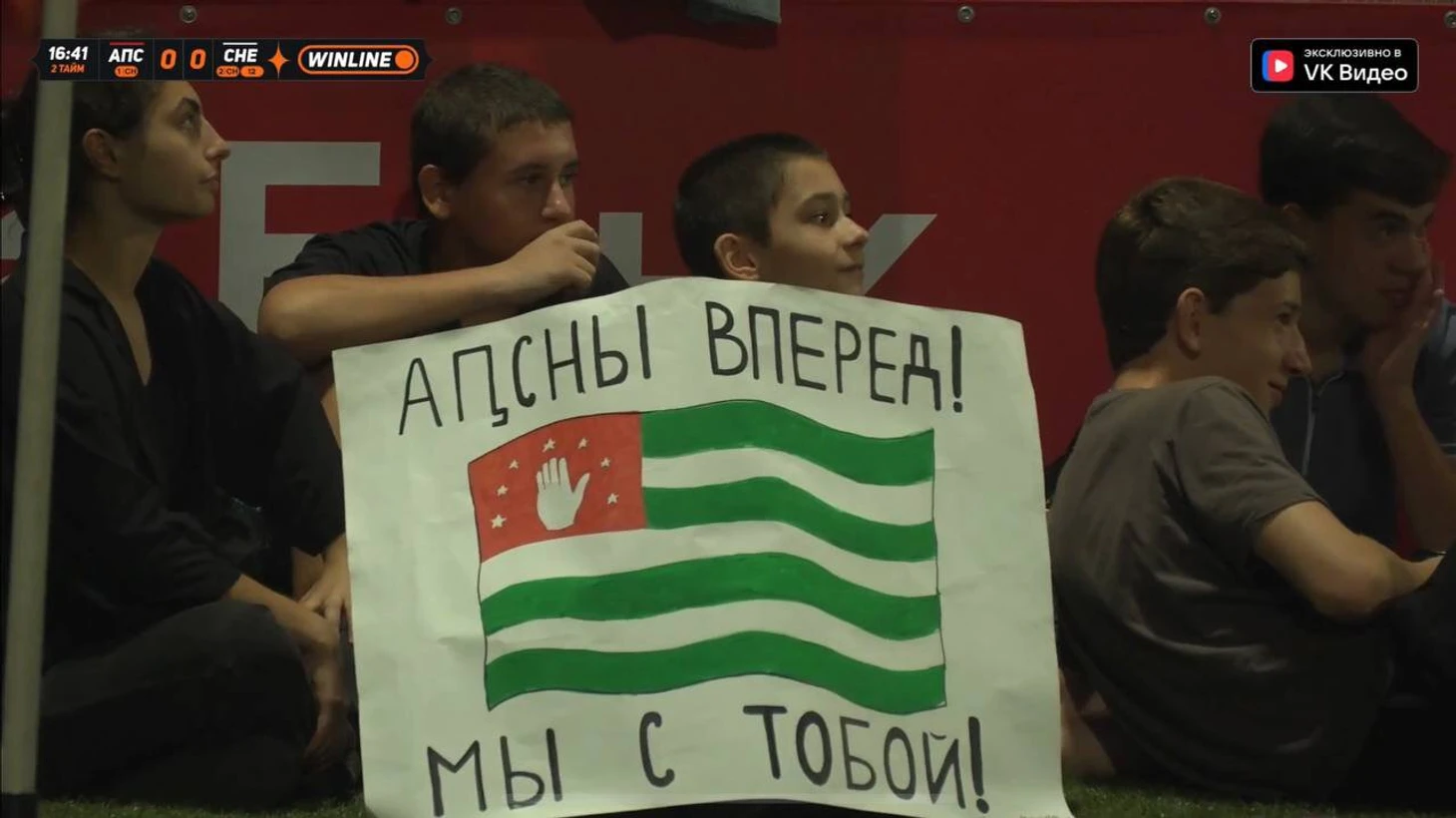 Во время матча стало еще атмосфернее. Многие подготовили плакаты – например, с надписью «Апсны», мы с тобой». Многим не хватило места – они забирались на ограждения.