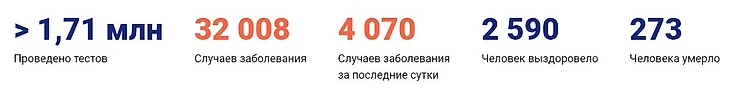 Обновление на 17 апреля 11:20 по московскому времени: в России зафиксировано 32 008 заражений COVID-19, 2 590 выздоровлений, 273 смерти, прирост зараженных за сутки составил +4 070.