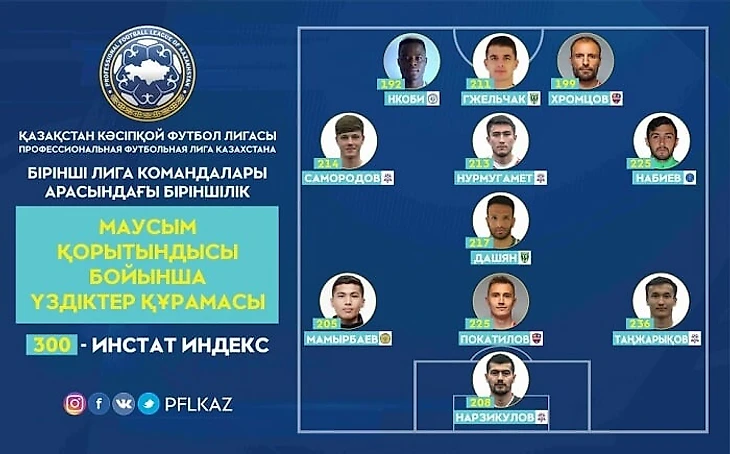 ПФЛК составила символическую сборную Первой лиги-2020. В список попали четыре футболиста «Актобе»