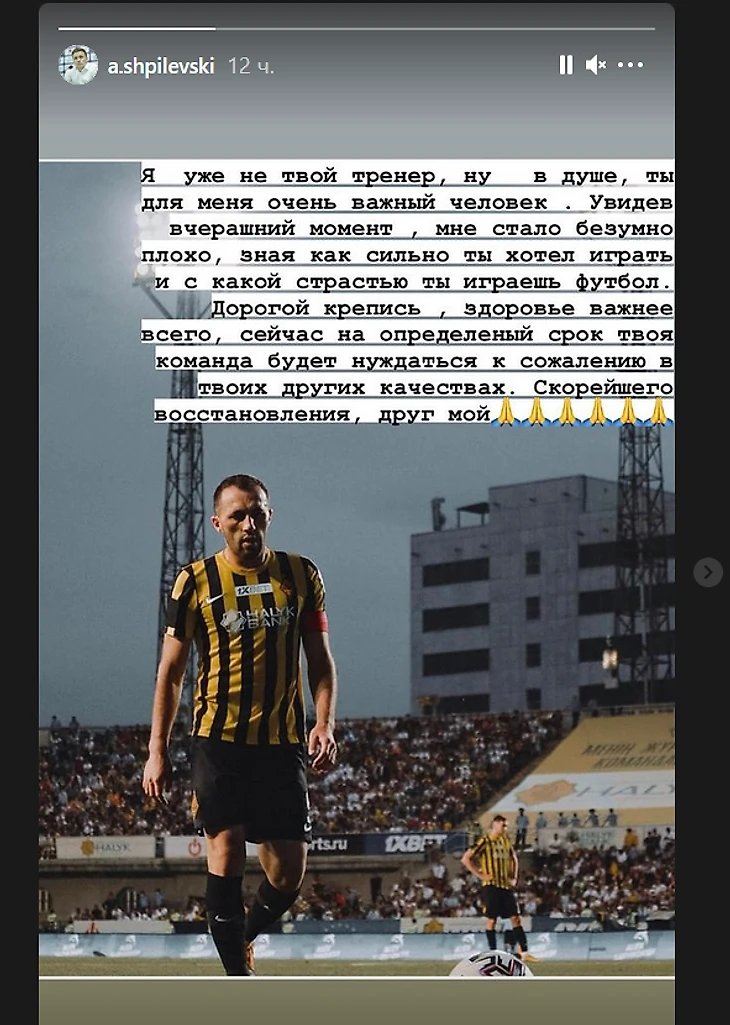 Бывший тренер «Кайрата» Алексей Шпилевский в своем инстаграм-аккаунте пожелал капитану алматинского клуба Гафуржану Суюмбаеу скорейшего выздоровления.