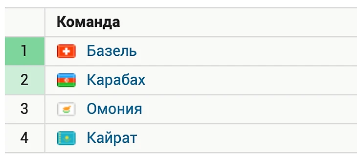 В группе H «Кайрат» по итогам 6 матчей занял последнюю строчку. На счету у алматинского клуба две ничьи – обе против «Омонии» (0:0, 0:0).