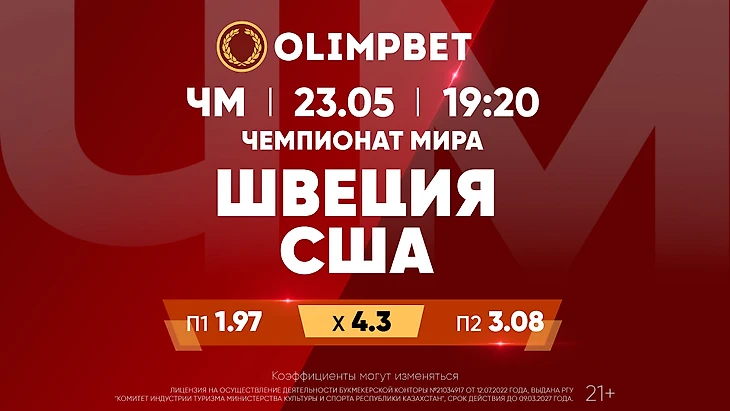 Самый надежный букмекер Казахстана в этой схватке видит фаворитом скандинавов. Победитель матча: Швеция – 1.61, США – 2.28. Вероятность дополнительного времени аналитиками Olimpbet расценивается как весьма незначительная. Овертайм: будет – 4.3, овертайм: не будет – 1.22. При этом, что довольно парадоксально, самый ожидаемый счет – ничья 2:2 с кэфом 8.5.