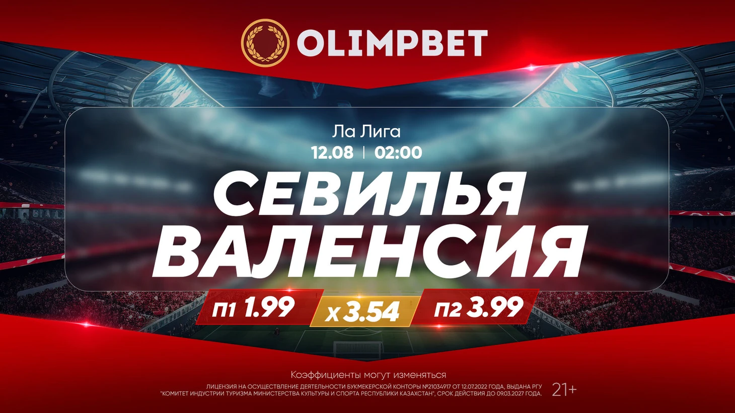 В линии самого надежного букмекера Казахстана Olimpbet «Севилья» обозначена явным фаворитом поединка: П1 – 1.99, Х – 3.54, П2 – 3.99. Большая вероятность, что андалусийцы начнут сезон спокойной домашней победой.