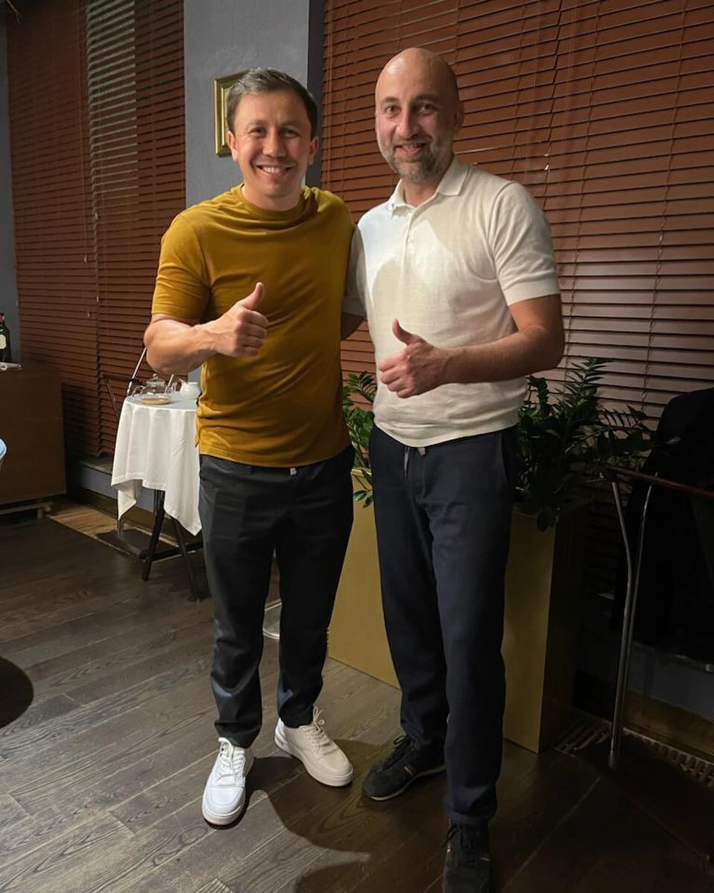 «С Геннадием Головкиным, великим человеком и очень простым в общении. Обменялись мнениями и поговорили о спорте. Был рад такой встрече, Геннадий рассказал, что всем сердцем болеет за сборную Казахстана и всегда следит за нашими результатами. А результаты действительно впечатляющую, искренне заявил он. Для меня это очень приятные слова от такого мастера в спорте», — написал Адиев под фотографией с GGG.