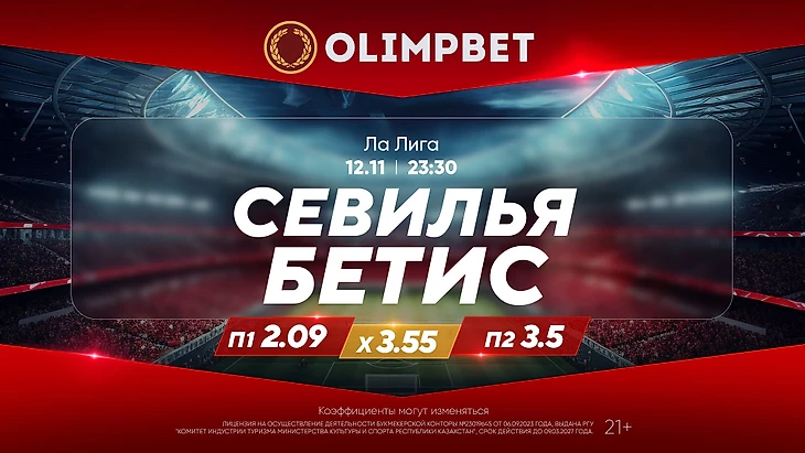 Давайте взглянем на предматчевые расклады. Несмотря на отставание от оппонента на девять очков (11 против 20), именно «Севилья» идет, согласно коэффициентам в линии самого популярного букмекера Казахстана, фаворитом в этой дуэли: П1 – 2.09, Х – 3.55, П2 – 3.5.