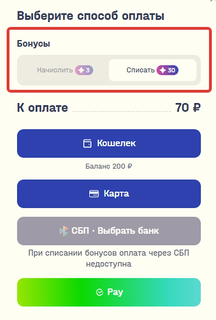 Алгоритм оплаты билетов с помощью баллов программа лояльности: