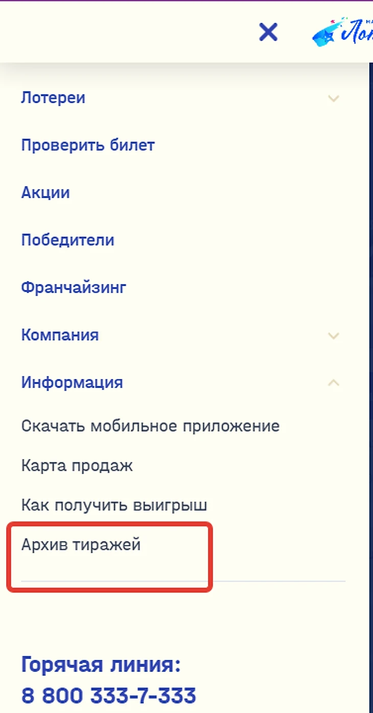 На картинке: раздел Архив тиражей на главной странице Национальной лотереи