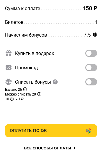 После выбора купона вам надо оплатить билет по СБП, картой, с баланса мобильного телефона или электронным кошельком.