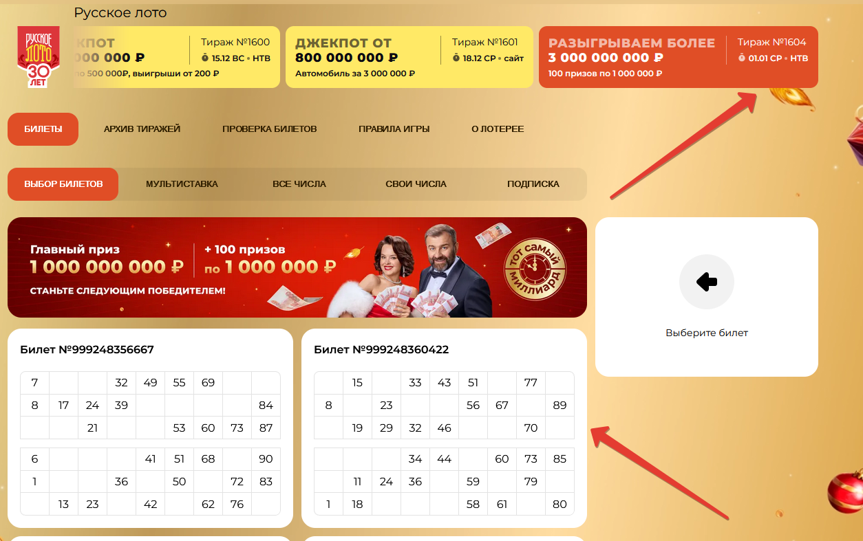 Билеты Новогоднего миллиарда от «Русского лото» уже поступили в продажу. Вы можете приобрести билет: