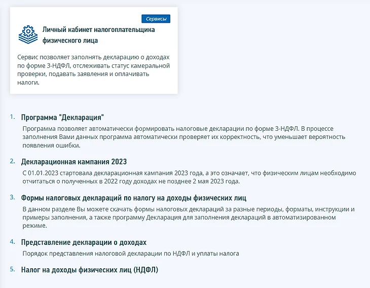 На картинке: информация о декларации 3-НДФЛ на сайте Налоговой службы