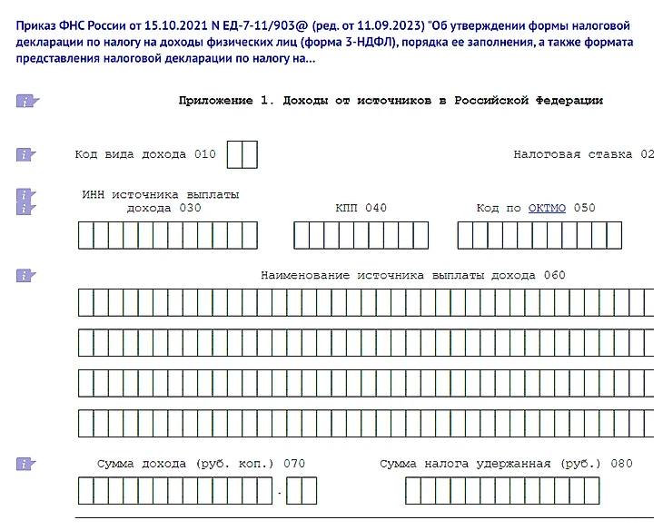 На картинке: бланк для заполнения декларации 3-НДФЛ