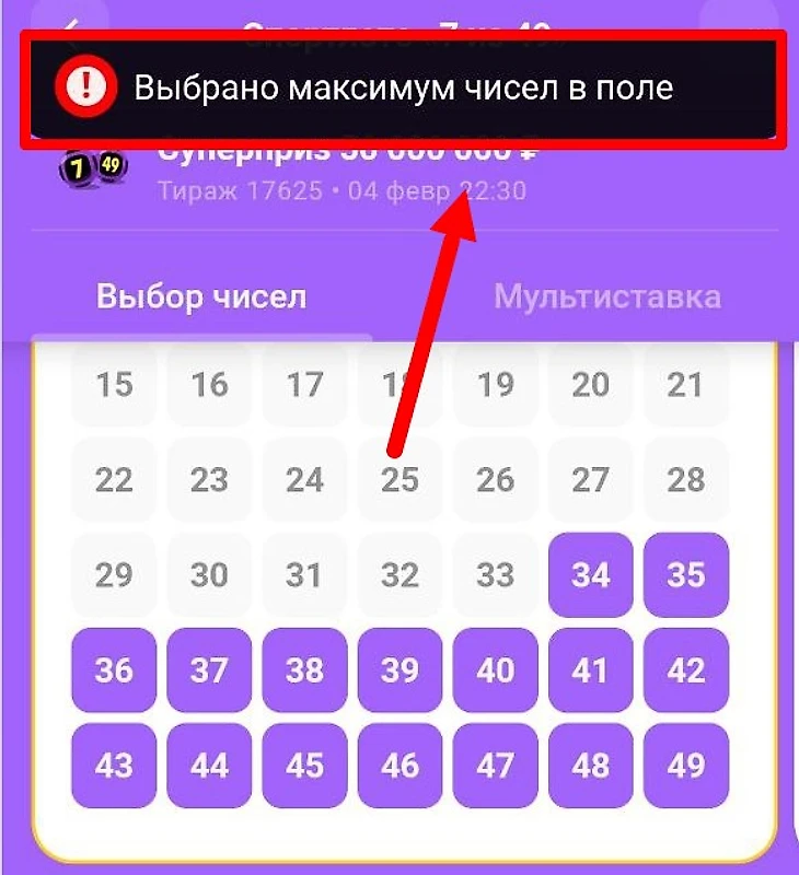 Лотерея «Спортлото «7 из 49»» в приложении Stoloto