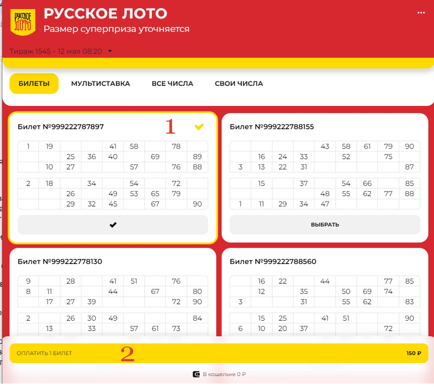 На 1545 тираж лотереи «Русское лото» продают бумажные и цифровые билеты. Первые можно приобрести в фирменных точках продаж и различных магазинах, а вторые доступны к покупке на сайте и приложении «Столото».