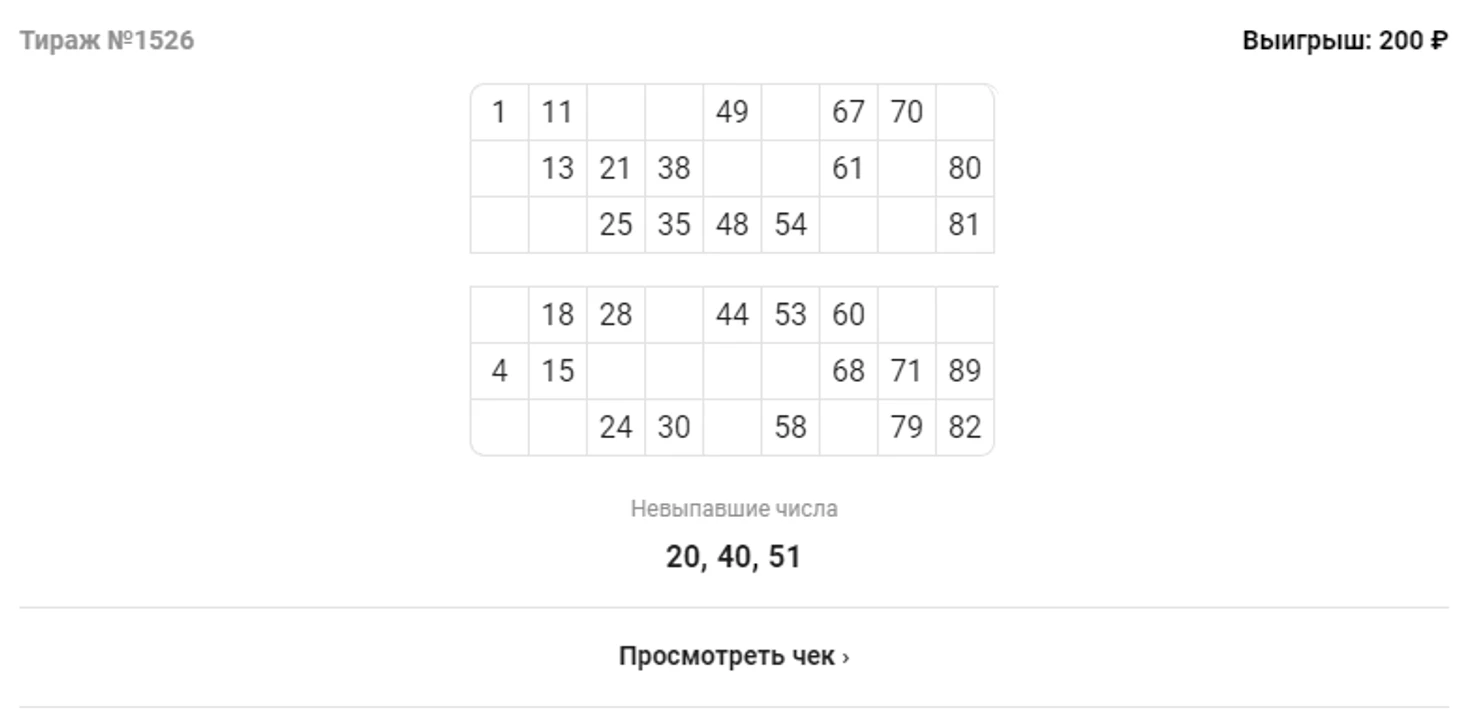 В первом разделе будут указаны купоны, которые принесли выигрыш, а во втором — билеты без выигрышной комбинации.