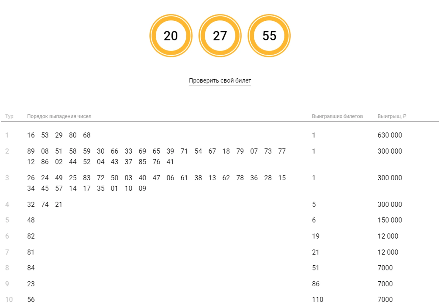 Запись шоу доступна на сайте «Столото» в разделе «Архив тиражей». Здесь помимо самого эфира можно узнать результаты розыгрыша: невыпавшие шары и количество победителей в каждом из туров. Если вы открыли «Архив тиражей» после окончания розыгрыша, для того чтобы узнать, если у вас выигрыш, достаточно посмотреть на номера шаров, которые остались в мешке. Если их нет в билете, то ваш купон выигрышный.