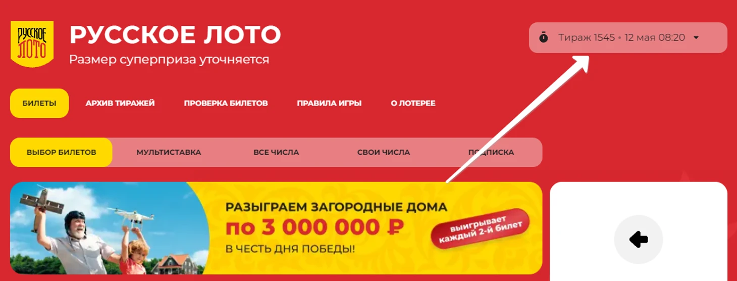 Обязательно проверяйте номер тиража. Праздничный розыгрыш пройдет 12 мая, номер тиража 1545. Информация указана в верхнем углу.