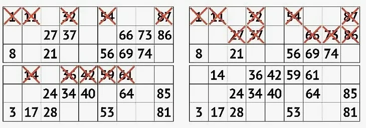 • во втором туре выигрывают те, кто раньше остальных закрыл верхнее или нижнее поле из 15 чисел;