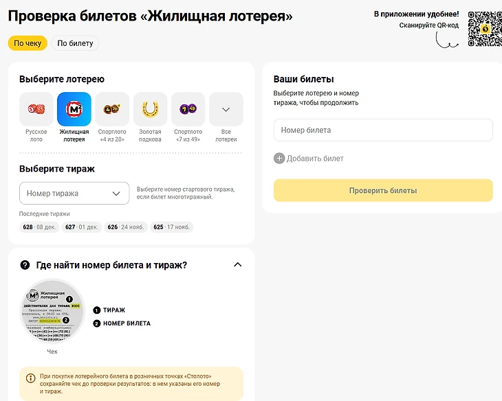 Проверить итоги тиража можно на сайте или в мобильном приложении «Столото». Вам надо открыть сайт и через меню перейти в раздел «Проверка билетов». Есть два способа узнать итоги розыгрыша: