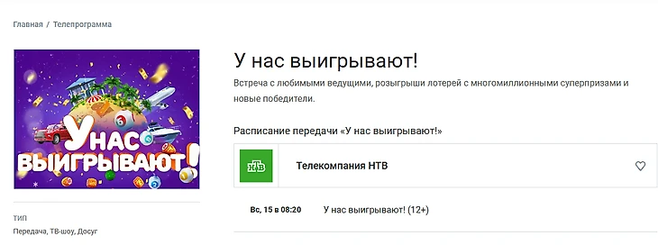 Вы можете смотреть розыгрыш шоу на телеканале, а также на сайте НТВ. Включайте программу за 5-10 минут до начала шоу, чтобы не упустить первый розыгрыш «Жилищной лотереи» в 2025 году.