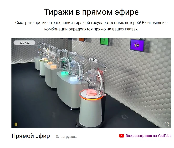Альтернативный вариант — просмотр видео на сайте «Столото». Для перехода к видеозаписи надо открыть меню и выбрать «Трансляции». На сайте ведется прямая трансляция всех лотерей, есть анонс ближайших розыгрышей.