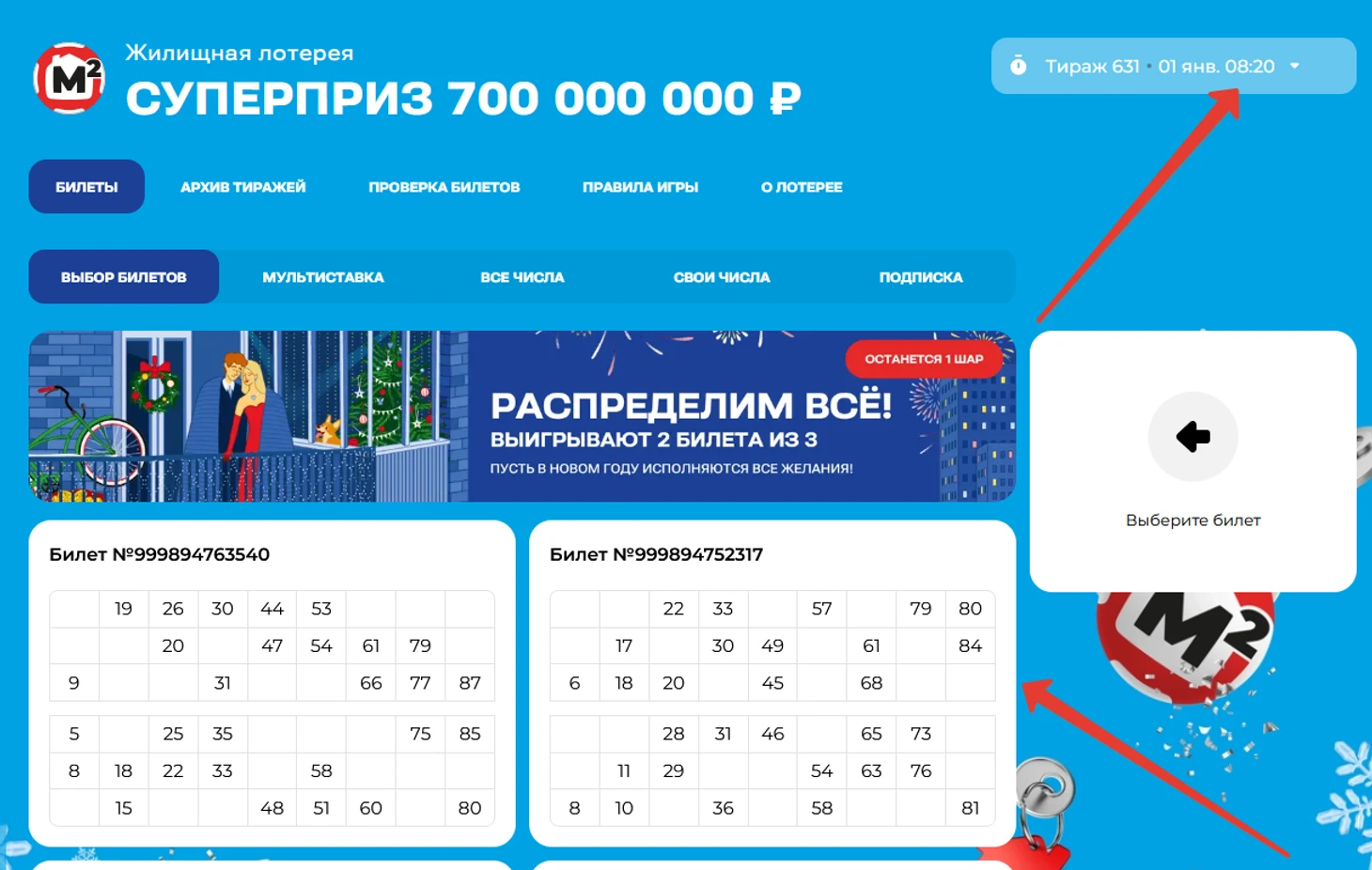 Обязательно проверяйте номер тиража перед покупкой купонов. Новогодний пройдет 1 января, номер тиража 631. Определившись с купоном надо нажать на него и перейти к покупке, для этого потребуется кликнуть по «Оплатить билет».
