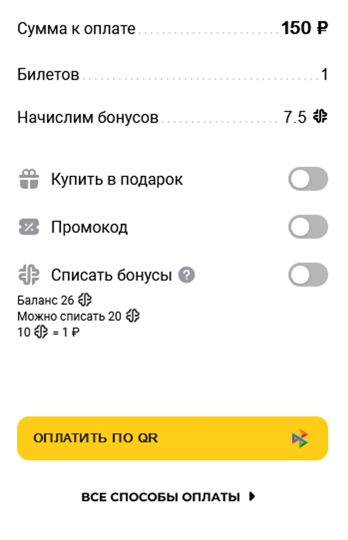 Вне зависимости от выбранного способа покупки, стоимость билета составляет 150 рублей.