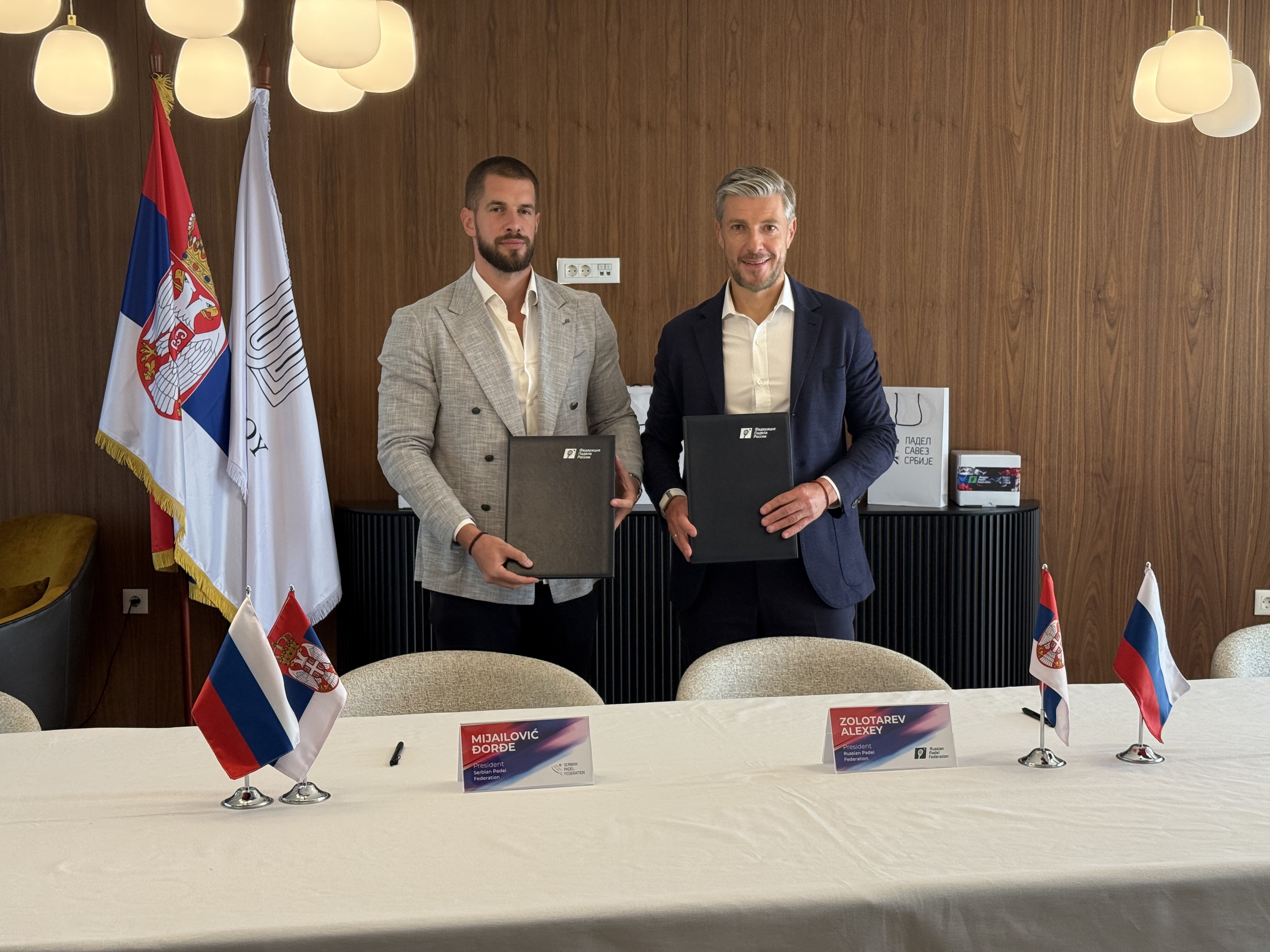 Федерация падела России и Союз падела Сербии подписали меморандум о сотрудничестве. Документ предусматривает обмен опытом между странами в рамках развития падела, подготовки тренерских и судейских кадров. Также в рамках меморандума стороны договорились о проведении совместных турниров и товарищеских матчей на уровне сборных. Соответствующий документ подписали Президент ФПР Алексей Золотарев и Президент СПС Джордже Мияйлович во время визита российской делегации в Белград в рамках проведения матчевой встречи между сборными двух стран.