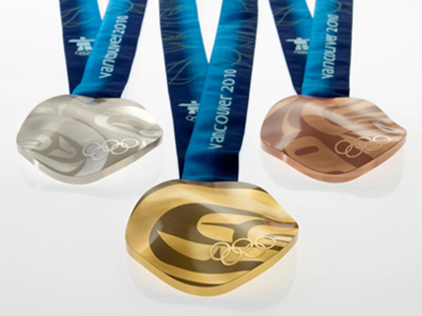 Без сомнения, одна из главных фишек Игр, результат двухлетнего труда дизайнера Омера Арбела и художницы Коррин Хант. Всего для Олимпиады изготовлено 615 медалей весом от 500 до 576 граммов и диаметром 100 мм. Среди них нет ни одной пары, полностью идентичной по гравировке. Любая награда представляет своего рода элемент мозаики, и если сложить их все воедино, то получится рисунок по мотивам изобразительного творчества коренных индейских племен Ванкувера. На медали высшего достоинства ушло чуть более двух килограммов золота (по 6 граммов на каждую). Итоговый проект был выбран из 48-ми предложенных вариантов, всего над созданием наград работало 34 человека.