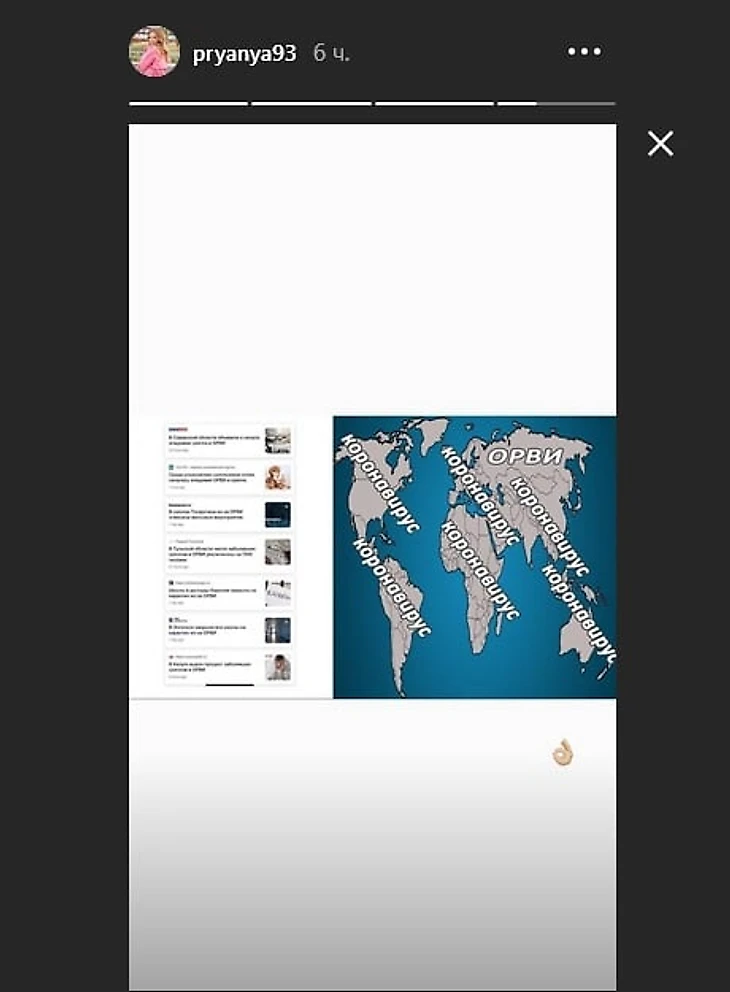 Шестикратная чемпионка мира по плаванию Юлия Ефимова выложила картинку про ситуацию с коронавирусом в мире.