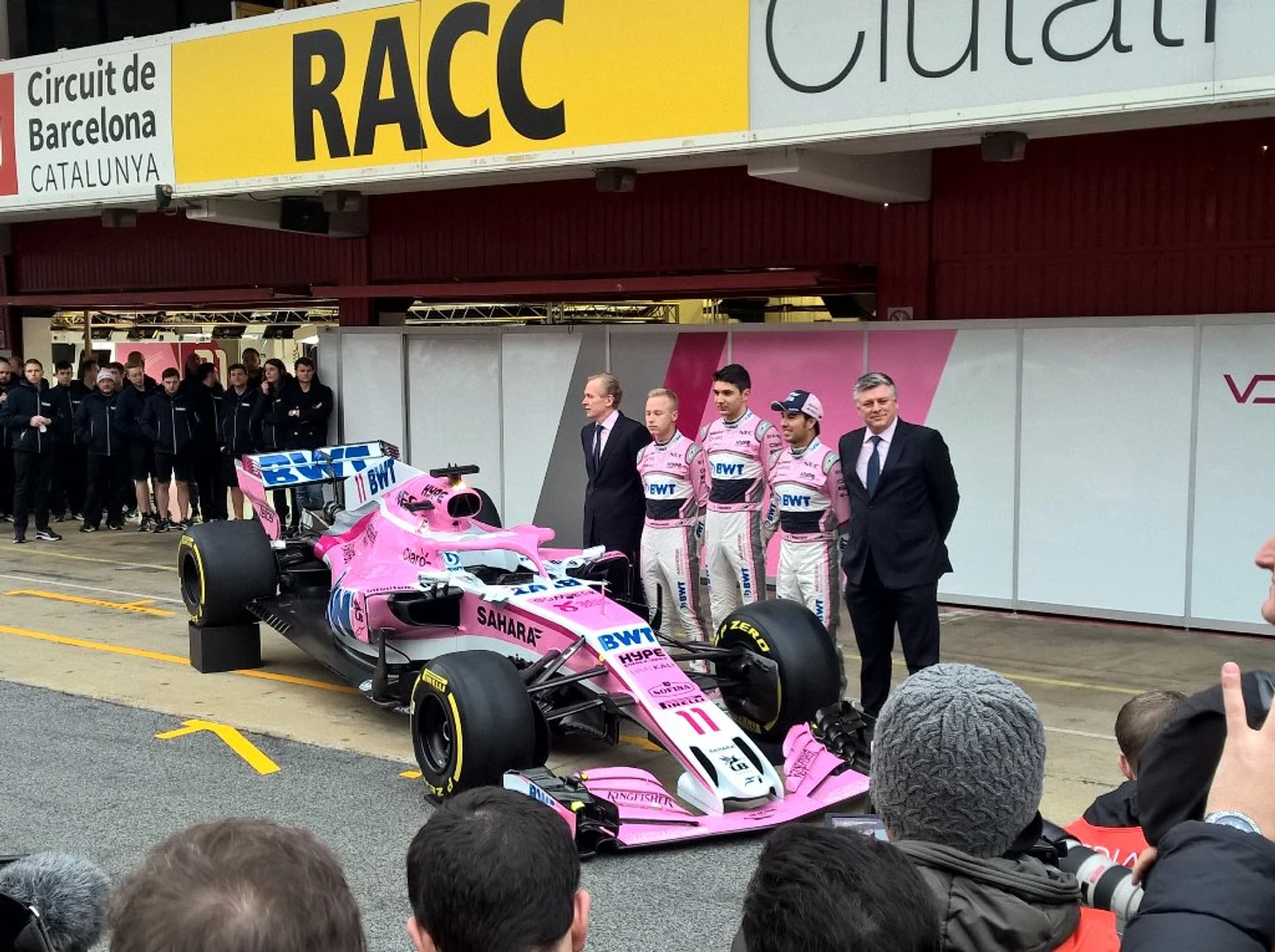 Перед началом первых предсезонных тестов в Барселоне команда «Форс-Индия» представила болид VJM11, за рулем которого в предстоящем чемпионате будут выступать Серхио Перес и Эстебан Окон.