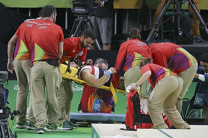 Французский гимнаст Самир Аит Саит, получивший вчера жуткую травму ноги во время исполнения опорного прыжка, переночевал в госпитале. Правда, даже на пути туда у Саита возникли неприятности – незадачливая бригада медиков уронила тележку со спортсменом.