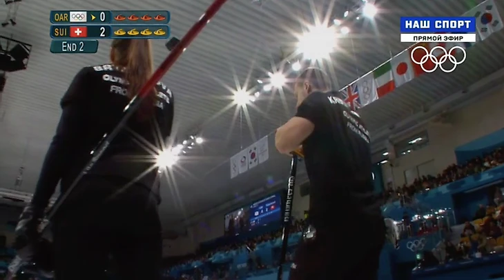 12:40. Еще одно важное событие дня: в 14:05 сборная России по керлингу сыграет против Швейцарии в полуфинале дабл-микста!