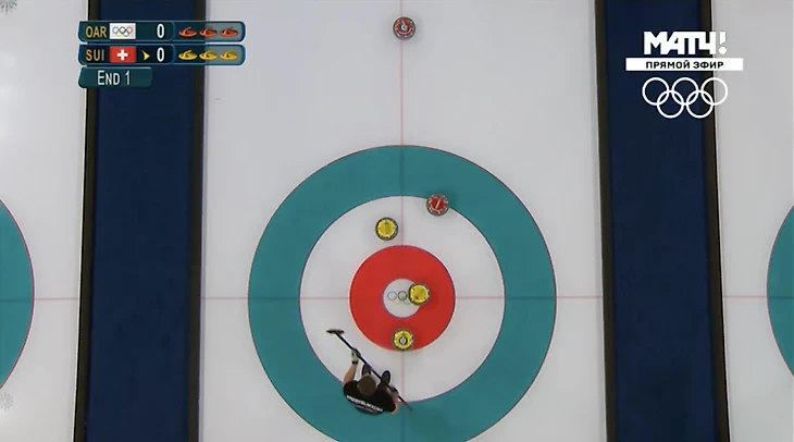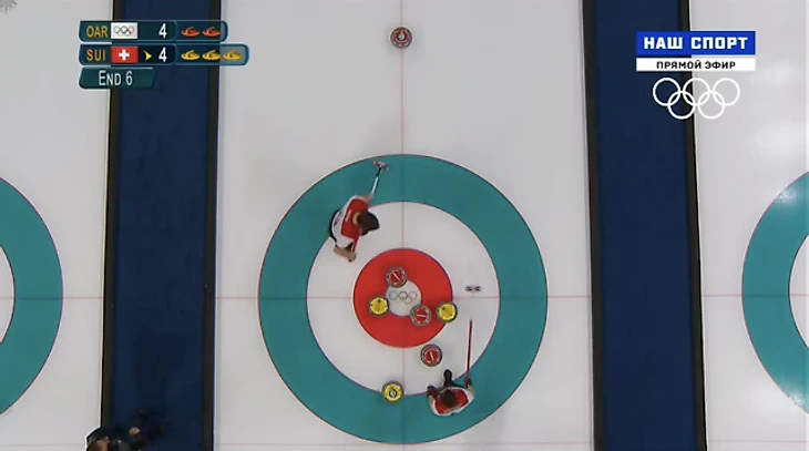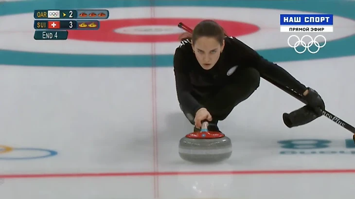15:02. 4:4 после пятого энда в керлинге. Игра крайне напряженная, а Анастасия Брызгалова очень красивая.