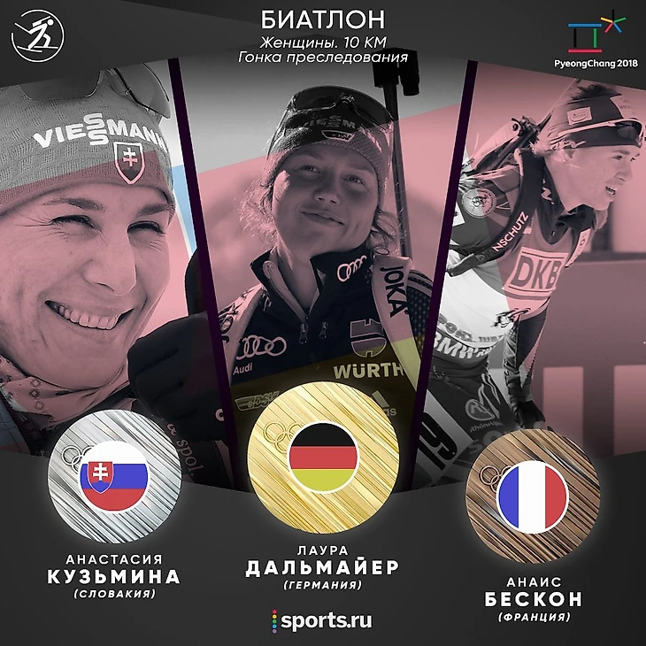 • Лаура Дальмайер взяла золото в женской гонке преследования, у Анастасии Кузьминой, которая представляет Словакию, – серебро. Татьяна Акимова – 31-я, а Ульяна Кайшева – 52-я, она забыла пробежать штрафной круг