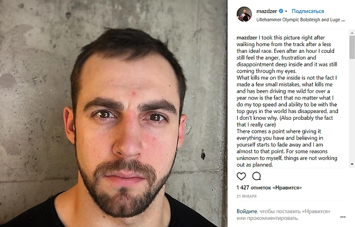 «Иногда достигаешь точки, когда тебя начинает покидать вера в себя, ты перестаешь выкладываться на полную, и я уже почти достиг этой точки», - написал Маздзер.