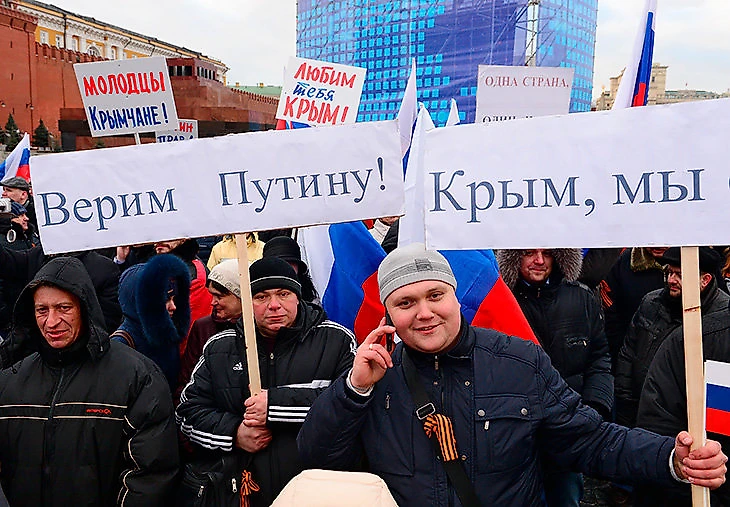 – А что – Крым? Люди не имеют права выбрать, как они хотят жить? Или вы хотите, чтобы их убивали, как в Сирии? Они хотят говорить на русском, жить в мире и воспитывать детей. Они не хотят быть сгоревшими, как в Одессе. Не хотят бояться прийти в церковь, попасть в тюрьму, потому что просто 9 мая выходят на улицы, надев фронтовой мундир с наградами. Тем более все было сделано законным путем, через референдум! Люди не свиньи, они имеют право на голос и на жизнь. На жизнь ту, которой они хотят. Практически весь Крым сказал: «Мы хотим в Россию». И они – Россия.