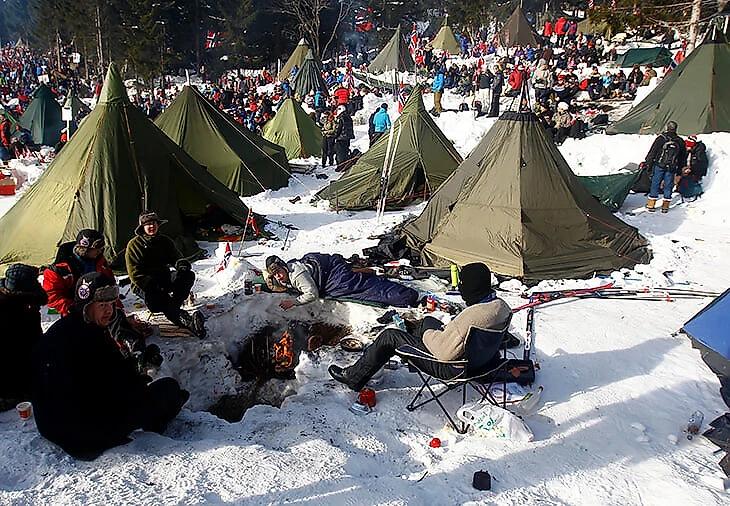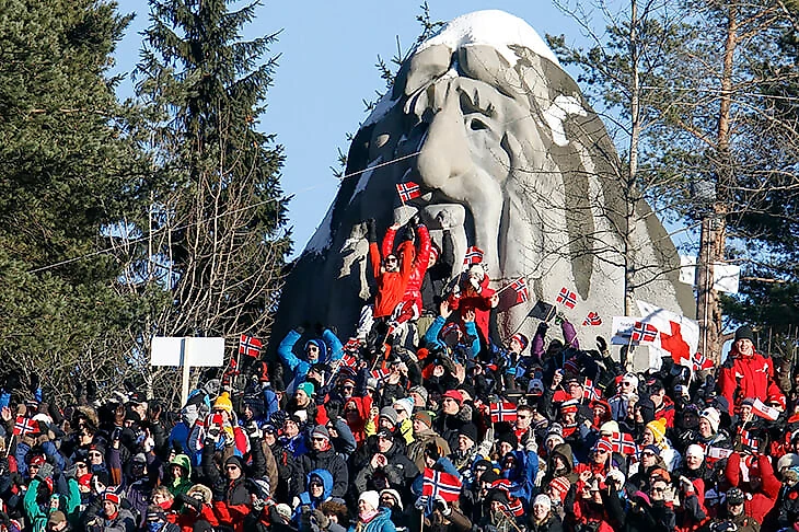 Доля лыжной телеаудитории в Норвегии – около 60%. Самое популярное состязание – Холменколленский марафон – смотрят почти 80% зрителей, а ежегодно посещают его 100 тысяч человек. Иногда фанатизм болельщиков пугает даже спортсменов: в 2018-м лыжники возмущались, что на трассу летят пивные банки, а кого-то угощают свежими вафлями прямо по ходу гонки: