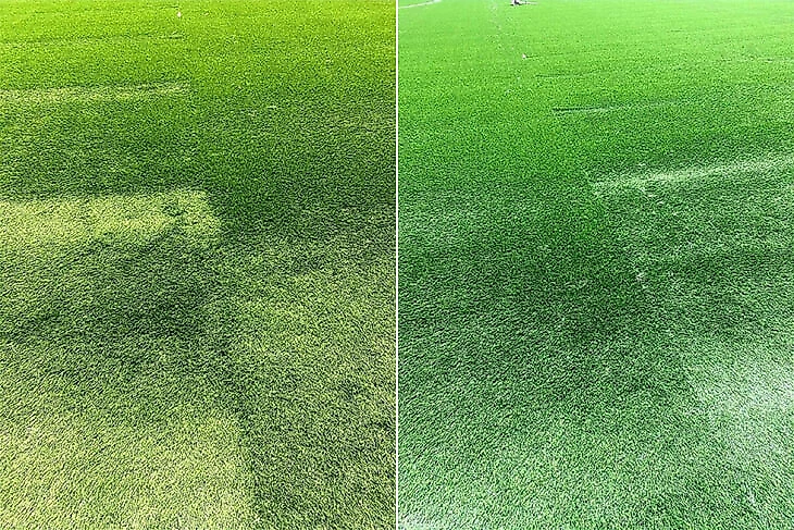 Есть стойкое ощущение, что еще есть над чем работать. Стыки между кусками синтетики заметны сразу – едва ли на таком поле можно играть в футбол. Видимо работы еще не завершены и через некоторое время поле будет выглядеть иначе.