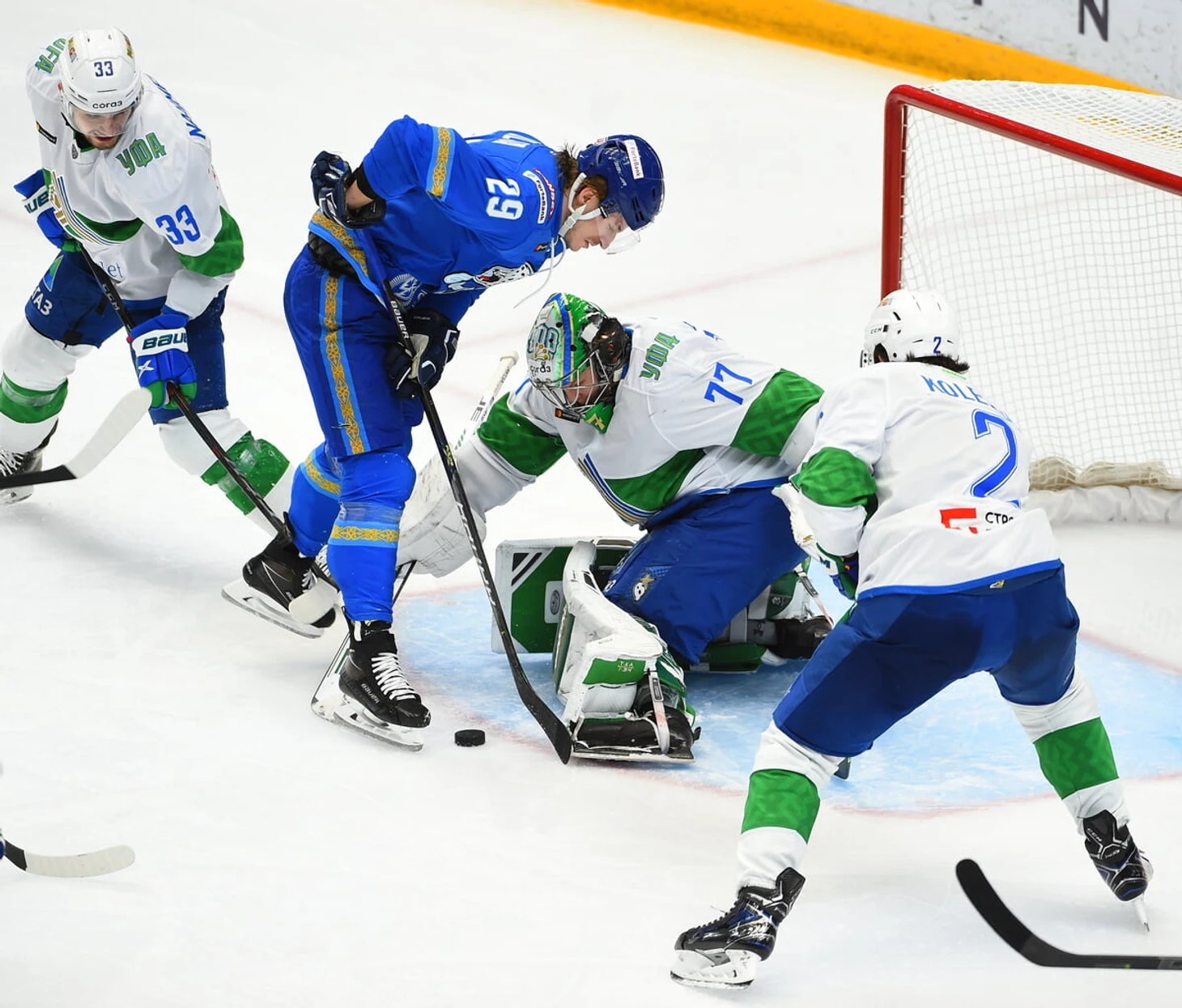 Концовка трети была нервной. «Салават Юлаев» активничал впереди, но до гола дело не дошло. При довольно равной игре «Барыс» вел в две шайбы.