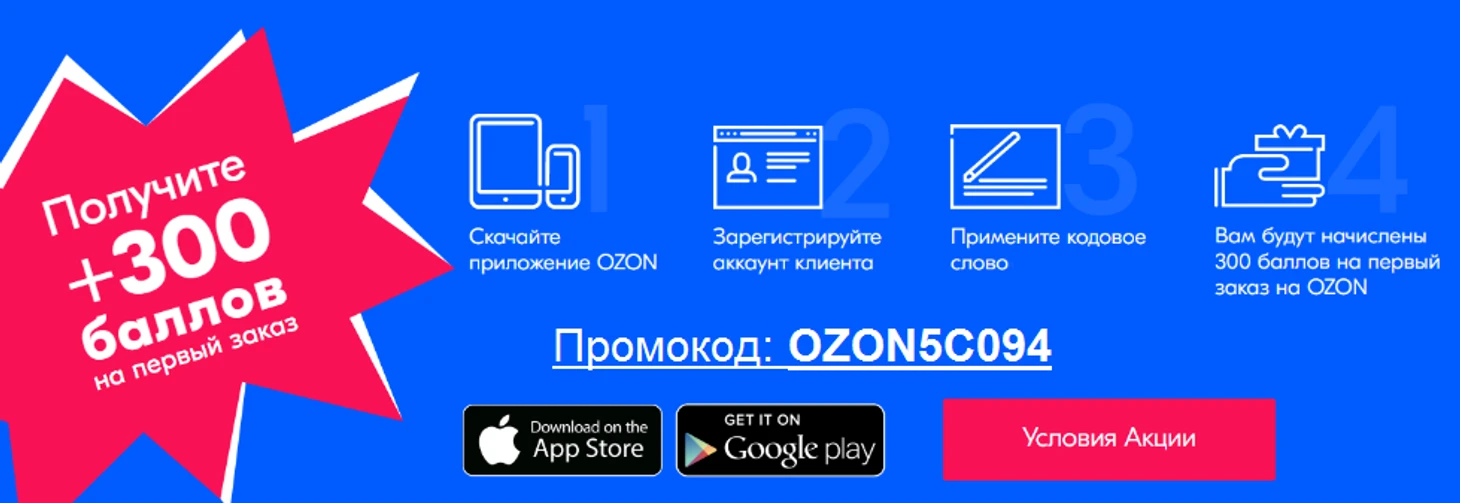 Ozon промокод 300 руб. на первый заказ (OZON5C094)