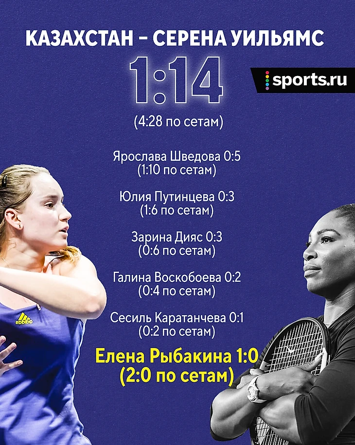 Это первая успешная попытка представителей Казахстана переиграть Серену – всего таких было 15.