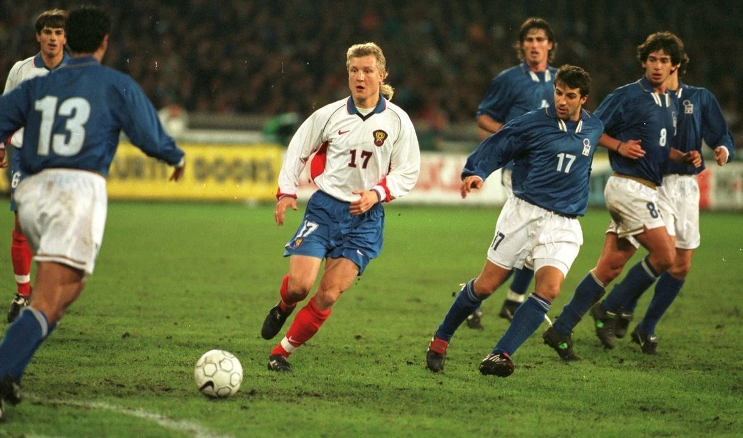 В 1996-м в Англии сборная России впервые участвовала на Евро с момента распада СССР. Россияне тогда попали в группу смерти: с Германией, Чехией (финалисты) и Италией.