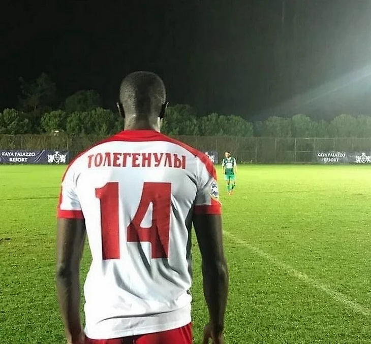 Из-за нехватки футболок на просмотре, темнокожий кандидат в состав «волков» вышел играть в майке с фамилией Толегенулы. Фото получилось очень колоритным.