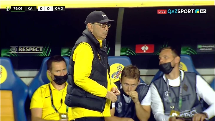 Баньяк снова спасает «Кайрат», перехватив очередную опасную передачу в штрафную зону. Тем временем, до конца матча остается чуть больше пяти минут.