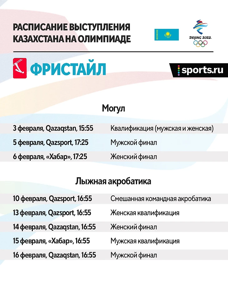 Полное расписание выступлений Казахстана на Олимпиаде: начинаем могулом, заканчиваем лыжными гонками